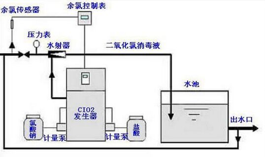 · 本工程采用氯酸鈉和鹽酸生產(chǎn)二氧化氯工藝,共需1套,每套30kg/h(按有效氯計)二氧化氯發(fā)生器及配套設施。藥液計量采用進口計量泵。