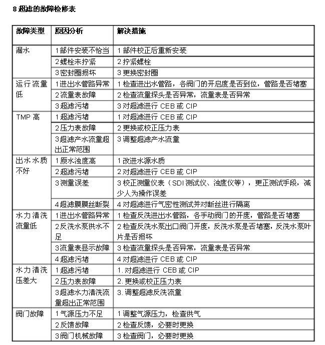 (7) 必須完整記錄超濾的運(yùn)行數(shù)據(jù),以便于可以及時(shí)追蹤超濾出現(xiàn)的污堵。